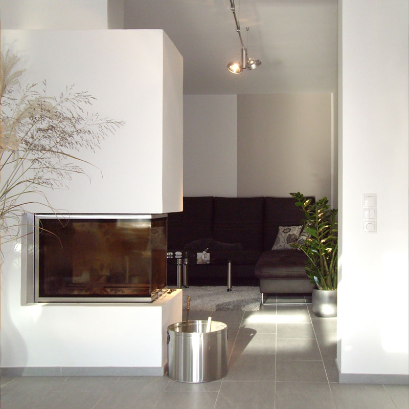 Ein in die Jahre gekommenes Einfamilienhaus sollte im EG komplett renoviert mit einem überarbeiteten Gestaltungskonzept versehen werden. Davon betroffen waren die Bereiche Beleuchtung, Gäste-WC, Küche (Vorratsküche und Wohnküche), Essen, Wohnen, Treppe zum OG, Türen, Fernseh- und Kaminbereich; statt kleinteiliger Raumaufteilung sollten Großzügigkeit und behagliche Atmosphäre im Alltag und bei Familientreffen im Vordergrund stehen.